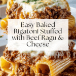 This baked rigatoni stuffed with beef ragu and mozzarella is a comforting Italian-inspired dish perfect for family dinners. Tender pasta tubes filled with rich, savory ragu and melted cheese make every bite satisfying and flavorful. It’s a crowd-pleaser that’s easier to prepare than it looks.