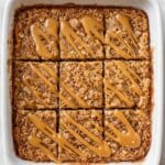 Store leftover banana baked oatmeal covered in the refrigerator for up to 4 days. Reheat individual portions in the microwave for about 1-2 minutes or until warmed through. It also freezes well—wrap tightly and freeze for up to 2 months. Thaw overnight in the fridge before reheating.