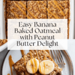 Keywords: banana baked oatmeal, healthy breakfast, peanut butter oatmeal, vegan baked oatmeal, dairy-free breakfast, fiber-rich breakfast