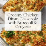 Keywords: Chicken Divan, Barefoot Contessa, chicken casserole, creamy chicken broccoli bake, Gruyere cheese sauce, comfort food
