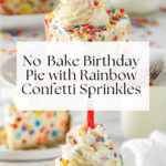 Keywords: birthday pie, no bake pie, cream cheese pie, instant pudding pie, marshmallow fluff dessert, graham cracker crust pie, festive dessert, easy party pie