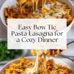 This Bow Tie Pasta Lasagna is a comforting and easy twist on traditional lasagna. Combining creamy cheese, savory ground beef, and rich pasta sauce all tossed with bow tie pasta makes for a delicious and satisfying meal perfect for weeknight dinners.