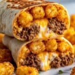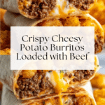 Cheesy Potato Burritos are a delicious fusion of crispy tater tots, seasoned ground beef, and melty cheese wrapped in a warm flour tortilla. This satisfying dish is perfect for a quick weeknight dinner or a fun weekend meal that everyone will love.
