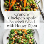 This Chickpea Apple Broccoli Salad with Honey Dijon Dressing is a fresh, crunchy, and nutritious salad combining finely chopped broccoli, chickpeas, crispy honeycrisp apples, shredded carrots, and a zesty honey dijon dressing. Boosted with dried cherries, pecans, and fresh parsley, this wholesome salad offers a delightful balance of sweet, tangy, and savory flavors, perfect as a light lunch or side dish.