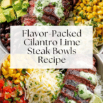 Cilantro Lime Steak Bowls are a vibrant, flavorful dish featuring marinated and seared flank steak served over a zesty cilantro lime rice base, complemented by black beans, charred corn, fresh vegetables, and a creamy cilantro lime dressing. This hearty bowl is perfect for a nutritious and satisfying meal that balances smoky, tangy, and fresh flavors with a range of textures.