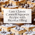 Classic Cannoli Squares bring the beloved flavors of traditional cannoli into an easy-to-make layered dessert. With a buttery crust and creamy ricotta filling studded with chocolate chips, this treat is perfect for gatherings or a delightful homemade indulgence.