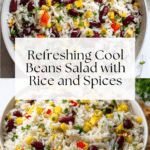 A refreshing and flavorful Cool Beans Salad featuring a zesty cumin-chili dressing, mixed beans, basmati rice, and fresh vegetables. Perfect as a light lunch, side dish, or picnic staple.