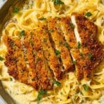 Keywords: Chicken Alfredo Pasta, Parmesan Crusted Chicken, Creamy Alfredo Sauce, Fettuccine Pasta, Italian Comfort Food