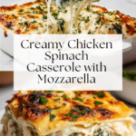 This Creamy Chicken and Spinach Casserole is a comforting and flavorful baked dish combining tender shredded rotisserie chicken, nutritious spinach, and creamy cheeses. A rich sauce made with garlic, onions, and Italian seasoning melds with cooked rice for a hearty, satisfying meal perfect for weeknight dinners.