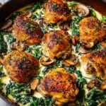 This creamy chicken spinach and mushroom bake is a comforting, flavorful dish featuring juicy chicken breasts smothered in a rich mixture of sautéed spinach, mushrooms, garlic, and a blend of mozzarella and Parmesan cheeses. Perfectly seared and baked to golden bubbly perfection, it’s an easy one-dish meal ideal for weeknight dinners or special occasions.