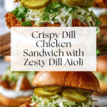 This Crispy Dill Chicken Sandwich combines tender, juicy chicken with a zesty dill-infused crust and a creamy dill aioli. Perfectly toasted brioche buns, sharp cheddar, and crunchy pickles round out these flavorful sandwiches, making them a delicious treat for any meal.