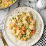 Keywords: crustless chicken pot pie, chicken pot pie, easy chicken dinner, stovetop pot pie, healthy comfort food