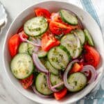 Keywords: cucumber tomato salad, fresh vegetable salad, easy summer salad, tangy vinaigrette, healthy side dish
