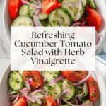 A refreshing and vibrant cucumber tomato salad featuring crisp cucumbers, ripe Roma tomatoes, and fresh herbs tossed in a tangy apple cider vinegar vinaigrette. Perfect as a light side dish or a healthy snack, this salad is quick to prepare and ideal for warm weather meals.