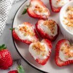 - Top with Crunch: Sprinkle the cooled strawberry crunch topping over the cream cheese-filled strawberries evenly.