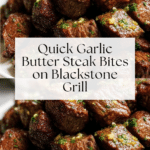 Keywords: Blackstone, steak bites, garlic butter steak, sirloin steak, quick dinner, grilled steak, steak recipe, easy steak bites