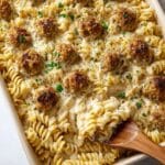 Keywords: Swedish meatball casserole, creamy meatball pasta, one-pan casserole, easy dinner recipe, baked pasta with meatballs