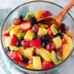 This Easy Fruit Salad Recipe combines a colorful assortment of fresh fruits with a homemade citrus-vanilla glaze. The dressing is a sweet and tangy blend made from orange and lemon juice, brown sugar, and zest, simmered to a slight thickness and enhanced with vanilla extract. Tossed together and chilled for several hours, this refreshing fruit salad is perfect as a healthy dessert or side dish for any occasion.
