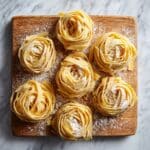 - Cutting the Pasta: Cut the rolled dough into your desired shapes. For tagliatelle, lightly flour the dough, roll it loosely, and slice into 1/2 cm (0.2 inch) thick strips. Gently separate the strands and place them on a plate in portions.