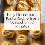 This easy homemade pasta recipe guides you through making fresh pasta dough from scratch using simple ingredients: plain all-purpose flour and eggs. After mixing and resting the dough, you’ll roll it out thinly and cut it into your preferred shapes like tagliatelle, lasagna sheets, or ravioli. The final fresh pasta cooks quickly in well-salted boiling water, resulting in tender, delicious pasta perfect for a variety of dishes.