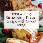 This Easy Strawberry Bread is a moist and delicious quick bread bursting with fresh strawberries. Perfectly tender with a subtle sweetness, it’s topped with a simple vanilla icing that adds a creamy finish. Ideal for breakfast, snack, or dessert, this bread combines the fresh flavor of strawberries with a soft crumb and a hint of vanilla.