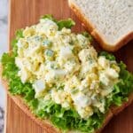 Store any leftover egg salad in an airtight container in the refrigerator for up to 2 days. Keep the bread separate to prevent sogginess. When ready to eat, assemble fresh sandwiches or enjoy the egg salad with crackers. Reheat is not recommended.