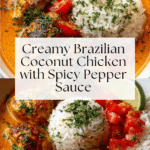 Fiery Brazilian Coconut Chicken is a vibrant, creamy dish that combines tender chicken thighs simmered in a tropical pepper sauce with rich coconut milk and spices. This flavorful recipe brings a perfect balance of heat and creaminess, ideal for a comforting yet exciting meal.