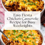 Fiesta Chicken Casserole is a vibrant and comforting dish that’s perfect for busy weeknights. Packed with flavorful spices, tender chicken, and a melty cheese topping, this casserole brings a fiesta to your dinner table with minimal effort.