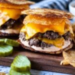 - Smashing the patties thin helps them develop a crispy crust when cooked on the griddle.
