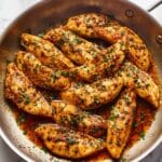 This Chicken Tenders recipe offers a quick and flavorful way to prepare tender, juicy chicken mini fillets with a simple blend of paprika, garlic, and Italian seasoning, pan-seared to perfection and garnished with fresh parsley.