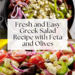 Keywords: Greek salad, Mediterranean salad, feta cheese salad, healthy salad, vegetarian salad, no-cook salad