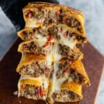 Griddled Cheesesteak Crunchwraps put a fun, crispy twist on the classic Philly cheesesteak. Combining tender ribeye, melted provolone, and crunchy Dorito chips wrapped in a warm tortilla, these handheld treats are perfect for a quick dinner or game day snack.