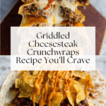 Griddled Cheesesteak Crunchwraps are a flavorful twist on the classic cheesesteak, wrapped in a large flour tortilla with grilled ribeye, sautéed peppers and onions, provolone cheese, and a zesty chipotle mayo sauce. They are then grilled to perfection, offering a crispy exterior and melty, savory interior for an irresistible handheld meal.