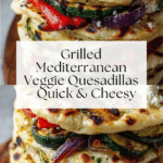 Keywords: Mediterranean quesadilla, vegetarian quesadilla, grilled quesadilla, veggie quesadilla, quick dinner, cheesy quesadilla, healthy vegetarian recipe