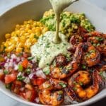 This vibrant bowl combines juicy grilled shrimp with fresh avocado, zesty corn salsa, and a luscious creamy garlic sauce. It’s a flavorful, easy-to-make meal perfect for lunch or dinner that bursts with texture and bright tastes.