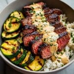 This Grilled Steak Bowl with Sauce and Grilled Zucchini is a delicious and satisfying meal that’s perfect for any night of the week. Featuring tender, flavorful steak paired with smoky grilled zucchini and a creamy herb sauce, it’s easy to prepare and sure to impress.