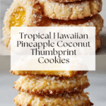Delight in the tropical flavors with these Hawaiian Pineapple Coconut Thumbprint Cookies featuring a buttery crust rolled in shredded coconut and filled with sweet pineapple jam. Perfect for a beach-themed party or a sunny afternoon treat, these cookies combine a tender texture with a burst of fruity sweetness.