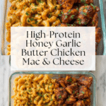 Keywords: honey garlic chicken, butter chicken, mac and cheese, high protein dinner, comfort food, creamy mac and cheese, easy weeknight meal