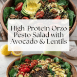 This High-Protein Orzo Pesto Salad is a vibrant and nourishing dish perfect for a quick lunch or light dinner. Packed with wholesome ingredients like lentils, avocado, and a fresh walnut basil pesto, it offers a delicious blend of textures and flavors.