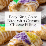 Keywords: King Cake Bites, Mardi Gras dessert, cream cheese pastries, crescent roll dessert, festive treats