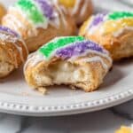 Keywords: King Cake Bites, Mardi Gras dessert, cream cheese pastries, crescent roll dessert, festive treats