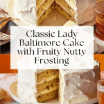 Lady Baltimore Cake is a classic Southern dessert known for its moist white cake layers and a rich, boozy fruit and nut frosting. This elegant cake combines delicate flavors and textures, perfect for special occasions or anytime you want a show-stopping treat.