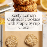 Keywords: lemon oatmeal cookies, gluten free cookies, almond flour cookies, healthy lemon cookies, maple syrup sweetened, lemon zest, lemon glaze