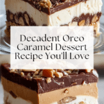 Lush Oreo Cookie Dessert with Cream Cheese, Chocolate Pudding, Caramel, and Pecans Recipe