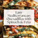 Keywords: Mediterranean quesadillas, spinach feta quesadilla, spinach cheese quesadilla, vegetarian quesadilla, easy Mediterranean recipes, skillet quesadilla