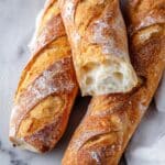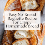 Keywords: No knead bread, baguette recipe, easy homemade bread, artisan bread, crusty baguette, overnight dough, French bread