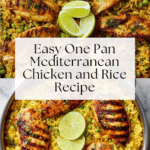 Keywords: Mediterranean chicken recipe, one pan chicken and rice, stovetop chicken and rice, easy chicken dinner, healthy chicken rice dish