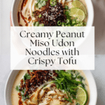Keywords: Peanut miso udon noodles, vegan noodle soup, crispy tofu, creamy peanut broth, Japanese inspired vegan recipes