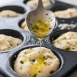 - Add Topping and Bake: Drizzle about 1 teaspoon of the rosemary garlic oil over each muffin. Bake in the preheated oven for about 20 minutes or until the tops are golden brown.
