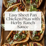 Sheet Pan Chicken Pitas with Herby Ranch are an easy and flavorful weeknight dinner. Tender roasted chicken and caramelized vegetables come together with a creamy, herb-infused ranch sauce, all nestled inside warm pitas. This simple meal is perfect for a quick, satisfying bite.